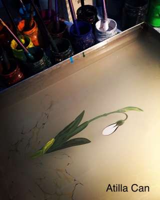 Fransız Marguerite (Papatya) hanım, karda ışıldayan kar gibi bembeyaz saçları ile karşıma oturduğunda, bende ona bir süpriz yapıp ona beyaz bir papatya ebru yaptım.O an, Marguerite hanımda da küçük çocukta gördüğüm; şaşkınlığı,sevgiyi ve içtenliği hissettim.Marguerite hanım, ebrusuna baka baka yol alırken,ben o gün Amerika'lısı,isviçrelisi,Avusturalya'lısı,Tunus'lusu,Fransız'ı,Peru'lusu,Alman'ı ve niceleri ile ebru yaptım.Tüm bu insanların ortak özelliği, ebru santını hayatlarında ilk kez görüyor olmaları,hepsinin yüzünde bir mutluluk,hepsinin yüreklerinde sıcaklık ve hepsinin farklı dillerde teşekkür ediyor olmalarıydı.